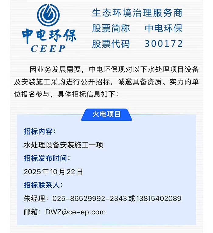 中電環(huán)保股份有限公司是南京市首家環(huán)保上市公司(股票簡稱:中電環(huán)保,股票代碼:300172),南京環(huán)保產(chǎn)業(yè)協(xié)會會長單位,國家級聯(lián)盟理事長單位,是生態(tài)環(huán)境治理服務(wù)商,主營(3+1):水務(wù)、固危廢、煙氣治理及產(chǎn)業(yè)創(chuàng)新平臺,包括:工業(yè)水處理、污水處理及水環(huán)境綜合治理;固危廢土壤、污泥餐廚垃圾處理;煙氣及VOCS治理;智慧環(huán)保;高端裝備等。